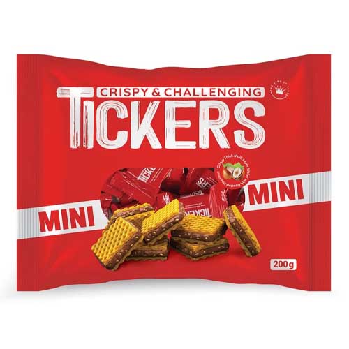 ویفر کاکائویی فندقی تیکرز 200 گرم تنقلات بیسکویت و ویفر با تکه های فندق قیمت و خرید محصولات برند تیکرز زر
