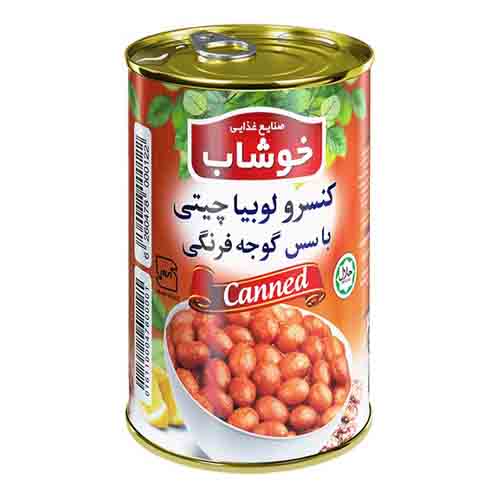 قیمت و خرید کنسرو لوبیا چیتی خوشاب با سس گوجه فرنگی