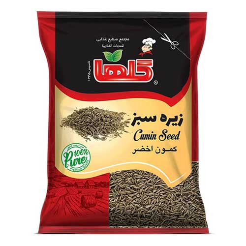 زیره سبز گلها با بستهبندی سلفونی و در وزنهای 20 و 50 گرم، ادویهای معطر بوده که عطر و طعم دلانگیز و خواص دارویی فراوانی دارد. طبع گرم و مزه تندی دارد و معمولا برای از بینبردن طبع سرد غذاهایی مانند برنج و گوشت استفاده میشود.