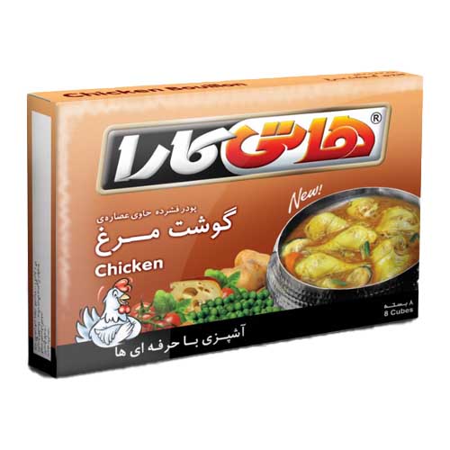 عصاره مرغ هاتی کارا در دو بستهبندی سلفون و کیوب، از بهترین و مرغوبترین مواد اولیه تهیه شده است. از این عصاره میتوان به عنوان طعمدهنده و یا جایگزین مرغ در انواع خورشت، سوپ و سایر غذاها استفاده کرد.