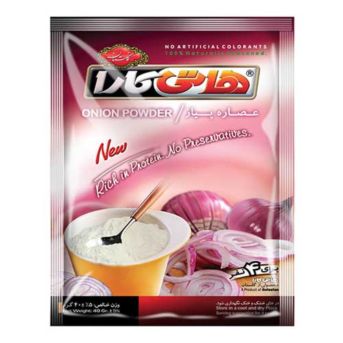 عصاره پیاز هاتی کارا بسته بندی سلفون و پت 40 گرم افزودنی ها ادویه و چاشنی پودر سیر و پیاز قیمت و خرید محصولات برند هاتی کارا