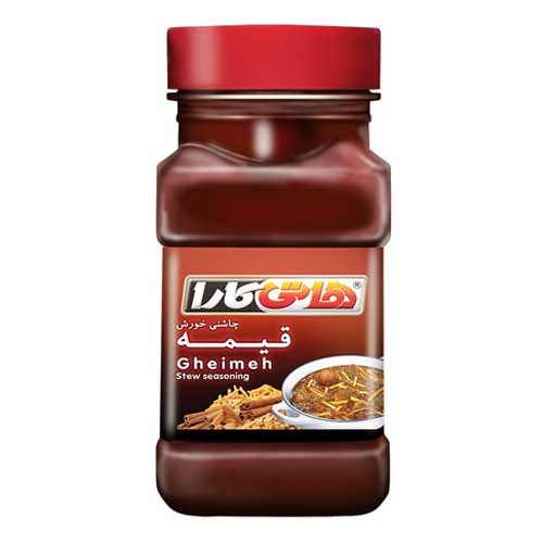 چاشنی خورش قیمه هاتی کارا دارای بستهبندی پت 90، 200 و 750 گرمی عرضه گردیده. این چاشنی خورش دارای ترکیباتی مانند پودر پیاز، پودر لیموعمانی، هل، دارچین، زعفران، پودر سیر و گوجه فرنگی و... بوده و باعث خوش طعمشدن خورش قیمه میشود.