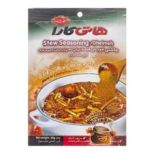چاشنی خورش قیمه هاتی کارا در بستهبندی سلفون 40 گرمی و کیوب 80 گری عرضه شده است.این چاشنی خوش دارای ترکیباتی مانند پودر پیاز، پودر لیموعمانی، هل، دارچین، زعفران، پودر سیر و گوجه فرنگی و... برای خوشطعم شدن خورش میباشد.