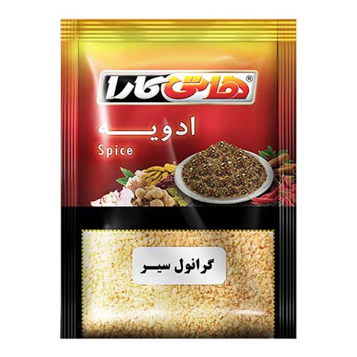 گرانول سیر هاتی کارا در دو بستهبندی پت 75 گرمی و سلفون 35 گرمی و با پیشرفتهترین دستگاههای اتوماتیک و کاملا بهداشتی تولید میگردد. این پودرسیر دارای خواص فراوانی برای سلامتی بوده و مناسب برای طعمدهی به انواع غذا میباشد.