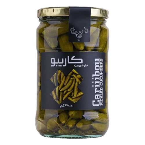 خیار شورهای کاریبو یکی از تردترین و خوشمزه ترین خیارشورهای شرکتی موجود در بازار میباشند. خیارشور منبعی از سدیم، پتاسیم و کلرید است و در پیشگیری از ابتلا به بیماریهای مزمن، نقش موثری دارد. تفاوت این محصولات در سایز خیارها میباشد.