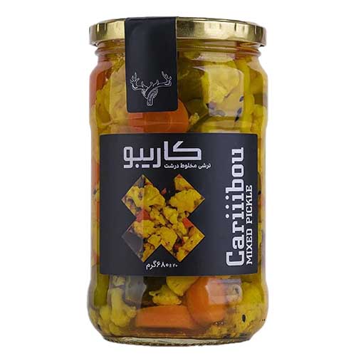 ترشی مخلوط کاریبو یکی از بهترین ترشیهای بازار است که با استفاده از بهترین مواد اولیه و تجهیزات پیشرفته در دو مدل درشت و ریز خرد شده تهیه و عرضه گردیده. تمام عملیات پر کردن شیشه ترشیهای کاریبو بصورت اتوماتیک و بدون دخالت دست است.