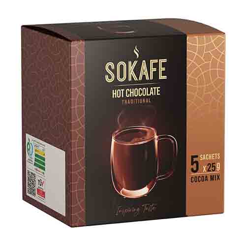 پودر هات چاکلت سوکافه در دو بسته 5 ساشه ای و 20 ساشه ای با وزن هر ساشه 25 گرم یک نوشیدنی نسبتا شیرین با غلظت منحصر به فرد و عطر و مزه خوشایند شکلات مرغوب میباشد.