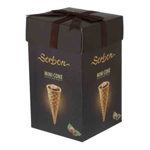 شکلات پذیرایی مخروطی مدل مینی کن سوربن در بسته 240 گرمی دارای بسته بندی شیک و زیبا جهت هدیه دادن میباشد. این محصول دارای سه طعم تلخ، نعنا و جرقه ای میباشد.