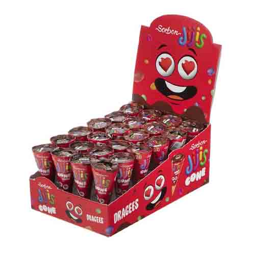 شکلات قیفی سوربن 24 عدد جیجیس مدل ژی ژیس مخروطی شکلات ژله ای اسمارتیزی جرقه ای شکلات و فرآورده های کاکائویی انواع شکلات قیمت و خرید محصولات برند سوربن
