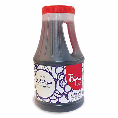 سرکه قرمز بیژن خوش طعم و کاربردی از تخمیر طبیعی انگور قرمز تهیه شده. این سرکه با طعم ترش، ملایم و رنگ قرمز یک چاشنی پرکاربرد در تهیه انواع غذاها و سالادها میباشد. همچنین بعنوان یک ماده مراقبتی در پوست مو نیز بکار میرود.