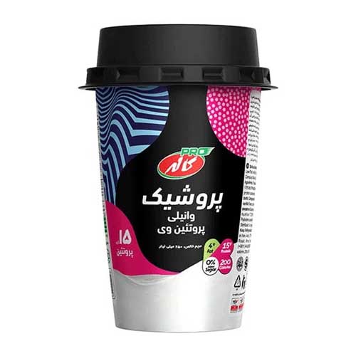 پرو شیک کاله پرو با حجم 235 میلی لیتر دارای 4 طعم وانیلی، شکلات فندقی، پسته و بادام زمینی بوده و داری مزه ای شیری مانند و فاقد قند افزوده میباشد. این محصول پروتئین زیادی داشته و مناسب برای ورزشکاران و افراد با رژیم غذایی پروتئینی میباشد.