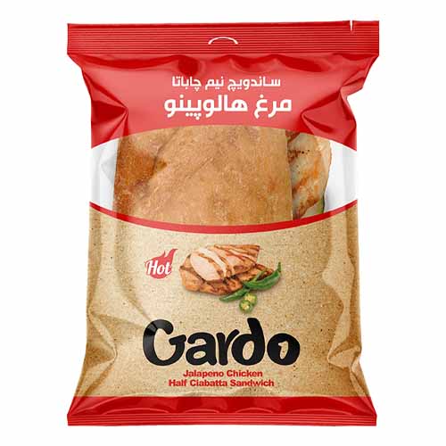 ساندویچ نیمه چاپاتا مرغ گاردو در سه طعم گریل، پستو و هالوپینو عرضه گردیده. این ساندویچ آماده با طعم و کیفیت عالی یک غذای کاملا سالم، سریع و خوشمزه برای کارمندان، دانشآموزان و ورزشکاران و افرادیست که وقت کمی برای درست کردن غذا دارند.