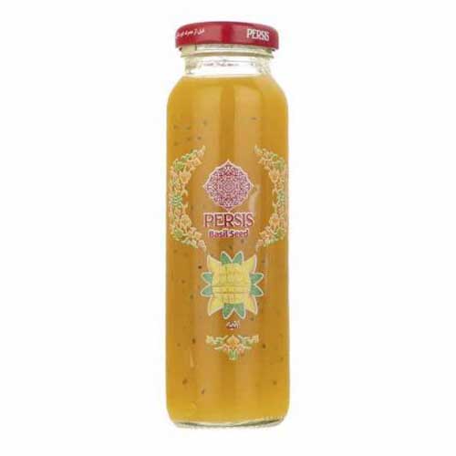 نوشیدنی تخم شربتی پرسیس در بطری های شیشه ای با حجم 200 میلی لیتر دارای 3 طعم جذاب پرطرفدار انار، انبه و لیمو و زعفران میباشد. این محصول یک نوشیدنی بدون گاز بوده و حاوی بذر ریحان میباشد.