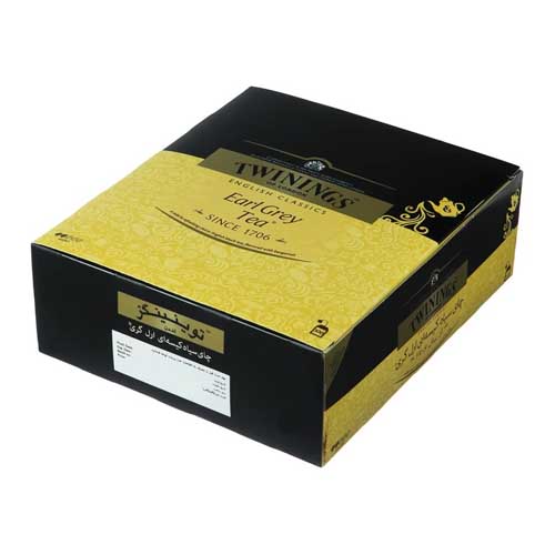 چای سیاه کیسه ای ارل گری توینینگز، در بستههای 25، 50 و 100 عددی، ترکیبی از انواع چای مرغوب با عصاره برگومات است. برگومات یکی از مرکبات کمیاب و خوشطعم بوده که طعمی دلپذیر و منحصر به فرد به چای میدهد.