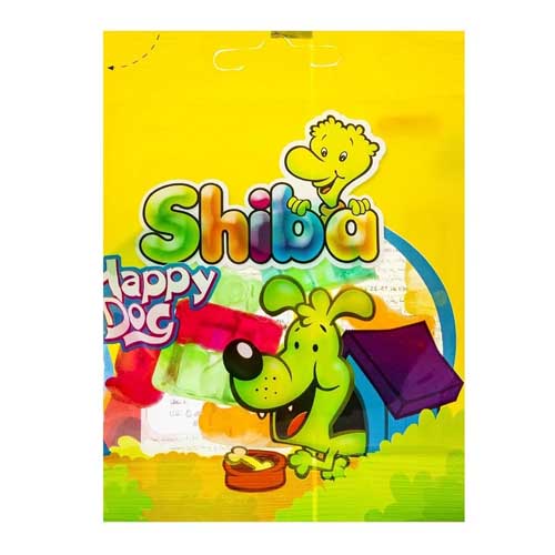 پاستیل شیبا با وزن 35 گرم دارای 5 مدل هپی داگ با طعم میوه ای، پروانه با طعم آلبالو، نوشابه ای با طعم نوشابه، استخوان با طعم شیر و آلبالو و گیلاس میباشد. این محصول با بسته بندی پلاستیکی و طراحی خلاقانه و بامزه، خوراکی مناسب برای تمام سنین میباشد.