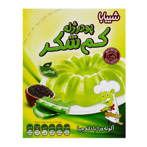 پودر ژله کم شکر شیبابا با بسته کارتنی 60 گرمی در طعم های آلبالو، پرتقال، بلوبری و آلوئه ورا با دانه چیا دارای کالری کمتری نسبت به ژله های دیگر میباشد. این محصول با شیرین کننده استویا طعم دار و شیرین شده و دارای قند بسیار پایین بوده که یک محصول کم خطر برای دیابتی ها می باشد.