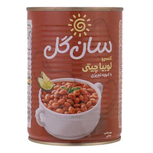 کنسرو لوبیا چیتی سان گل 480 گرم در سس گوجه فرنگی بدون مواد نگهدارنده کنسرو حبوبات و سبزیجات کنسرو لوبیا چیتی قیمت و خرید محصولات برند سان گل