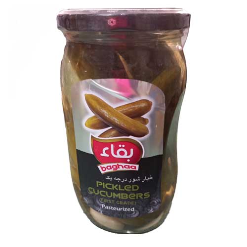 خیار شور بقاء 580 گرم ممتاز درجه یک سوپر ویژه شور و ترشیجات خیارشور قیمت و خرید محصولات برند بقاء
