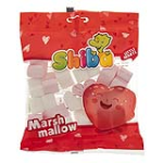 مارشمالو شیبا با وزن 50 گرم در دو مدل قلبی و خرسی دارای بافت اسفنجی شکل و نرم که به راحتی در دهان آب میشود و دارای طعم میوه ای میباشد. این محصول از ترکیب ژلاتین، شکر و ترکیب آنها با آب تهیه شده و فاقد اسید چرب ترانس میباشد.