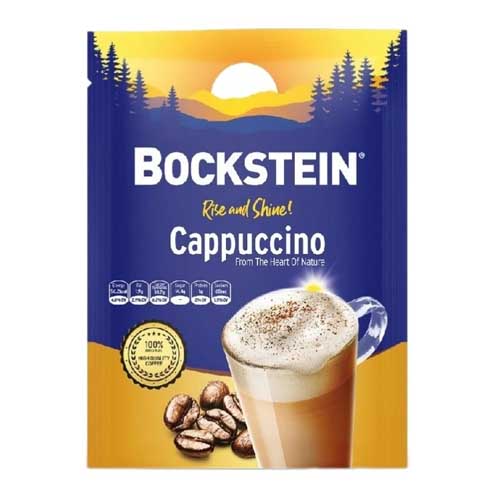پودر کاپوچینو فوری بوکشتاین به همراه پودر گرانول شکلاتی در وزن ساشه ای 23 گرم به صورت تکی، بسته 12 عددی و بسته 20 عددی عرضه میگردد. این محصول به صورت ترکیبی از دو شات قهوه اسپرسو، شکر و مقداری شیر تهیه شده و دارای طعمی تلخ و شیرین میباشد.