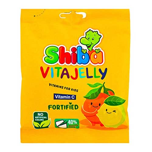 پاستیل ویتا جلی شیبا با وزن 60 گرم در مدل های ویتامین آ و ث، ویتامین ث و ویتامین ای، ث و ب دارای طعم مخلوط میوه ای میباشد. این محصول با بافت نرم و تازه از رنگ مصنوعی استفاده نکرده و قند این محصول تا 40 درصد کاهش یافته است.