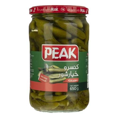 کنسرو خیارشور پیک درجه یک 650 گرم شور و ترشیجات سوپر ویژه خیارشور ریز ممتاز خونگی قیمت و خرید محصولات برند پیک