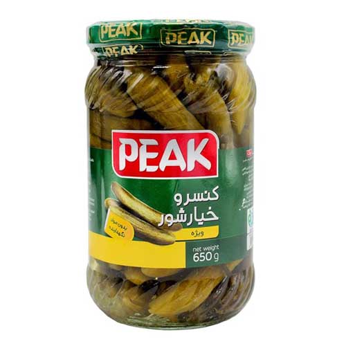 کنسرو خیارشور پیک ترد و خوشمزه و بدون مواد نگهدارنده در شیشه 650 گرمی در چندین نوع مختلف عرضه شده. تفاوت مدلهای این محصول در سایز خیار بکار رفته در آن میباشد و از لحاظ کیفیت و مزه در یک رده میباشند.