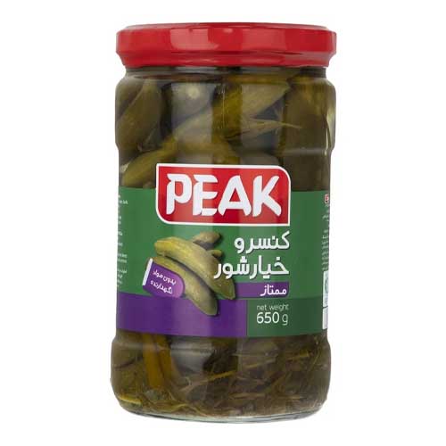 کنسرو خیارشور پیک ترد و خوشمزه و بدون مواد نگهدارنده در شیشه 650 گرمی در چندین نوع مختلف عرضه شده. تفاوت مدلهای این محصول در سایز خیار بکار رفته در آن میباشد و از لحاظ کیفیت و مزه در یک رده میباشند.