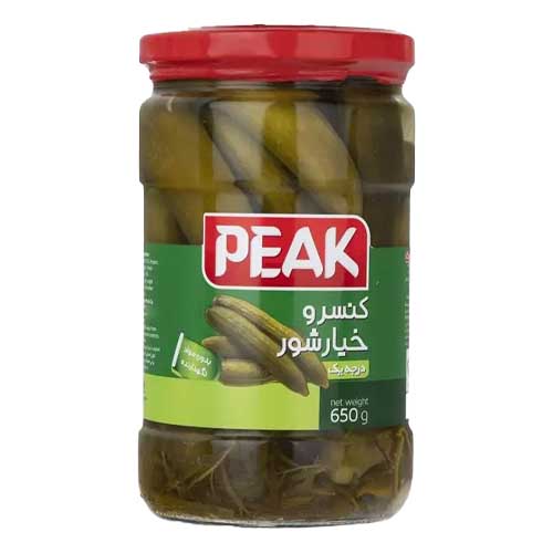 کنسرو خیارشور پیک درجه یک 650 گرم شور و ترشیجات سوپر ویژه خیارشور ریز ممتاز خونگی قیمت و خرید محصولات برند پیک