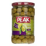 زیتون سبز باهسته پیک با وزن 650 گرم در سه نوع ویژه، سوپر ویژه و ممتازدر بستهبندی شیشهای عرضه گردیده. این محصول از زیتونهای مرغوب تهیه شده و تحت فرآیند بهداشتی، به زیتون شور تبدیل میشود.