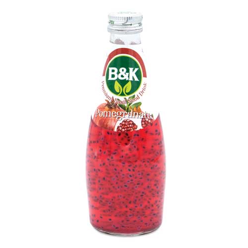 نوشیدنی حاوی بذر ریحان بی اند کی دارای بستهبندی شیشهای و وزن 300 میلی لیتر است. دارای طعمهای متنوع انار، آناناس، انبه، انگور قرمز و بلوبری و سرشار از ویتامین C بوده و باعث افزایش سوخت و ساز بدن و تقویت سیستم ایمنی میشود.