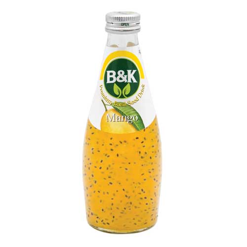 نوشیدنی حاوی بذر ریحان بی اند کی دارای بستهبندی شیشهای و وزن 300 میلی لیتر است. دارای طعمهای متنوع انار، آناناس، انبه، انگور قرمز و بلوبری و سرشار از ویتامین C بوده و باعث افزایش سوخت و ساز بدن و تقویت سیستم ایمنی میشود.