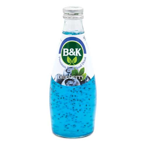 نوشیدنی حاوی بذر ریحان بی اند کی دارای بستهبندی شیشهای و وزن 300 میلی لیتر است. دارای طعمهای متنوع انار، آناناس، انبه، انگور قرمز و بلوبری و سرشار از ویتامین C بوده و باعث افزایش سوخت و ساز بدن و تقویت سیستم ایمنی میشود.