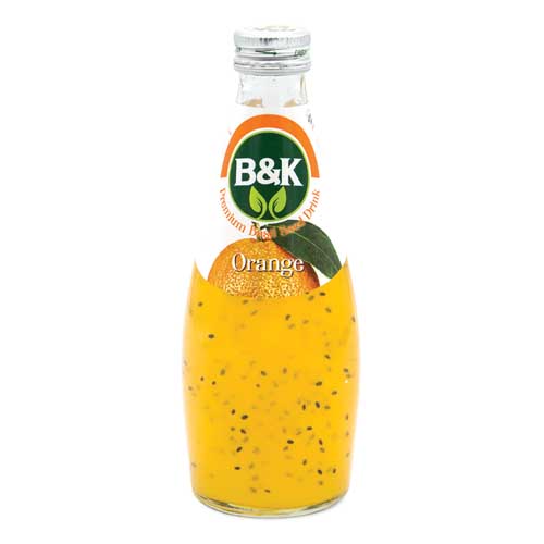 نوشیدنی حاوی بذر ریحان بی اند کی دارای بستهبندی شیشهای و وزن 300 میلی لیتر است. دارای طعمهای متنوع پرتقال، طالبی، سیب و موهیتو و سرشار از ویتامین C بوده و باعث افزایش سوخت و ساز بدن و تقویت سیستم ایمنی میشود.