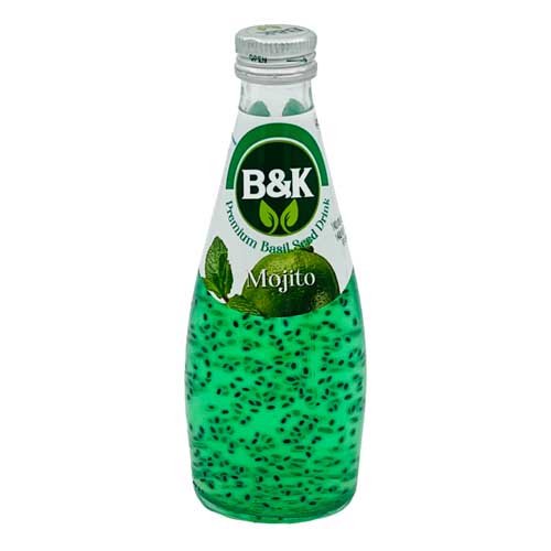 نوشیدنی حاوی بذر ریحان بی اند کی دارای بستهبندی شیشهای و وزن 300 میلی لیتر است. دارای طعمهای متنوع پرتقال، طالبی، سیب و موهیتو و سرشار از ویتامین C بوده و باعث افزایش سوخت و ساز بدن و تقویت سیستم ایمنی میشود.
