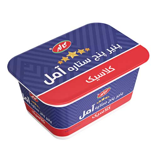 پنیر پنج ستاره آمل کلاسیک کاله در دو بسته بندی 100، 200 و 350 گرمی دارای طعم خاص و خاصیت جذب پروتئین بیشتری نسبت به پنیرهای طبیعی میباشد. این محصول از ترکیب پنیر تازه پاستوریزه، پنیر فتا و کره بدست آمده و دارای 23% چربی و 8% پروتئین میباشد.
