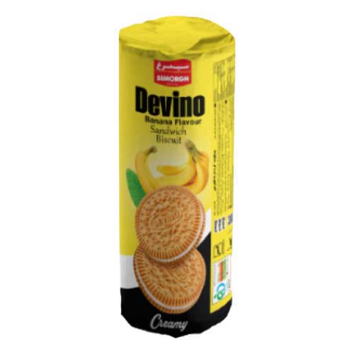 بیسکویت کرم دار دوینو سیمرغ دارای وزن 175 گرم و طعمهای متنوع پرتقال، نارگیل، فندق، دارک و موز است. منبع کربوهیدرات، چربی، پروتئین بوده و دارای ارزش غذایی بالا برای مصرف به عنوان تنقلات و یا میانوعده میباشد.