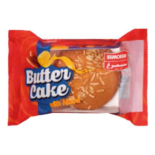 کیک بادامی سیمرغ با وزن 80 گرم و دو رنگ قرمز و زرد عرضه میگردد. یک کیک روغنی با تزئین خلال بادام و بسیار خوشمزه و مقوی است و مناسب برای پذیرایی، میانوعده و یا خوراکی مدرسه کودکان میباشد.