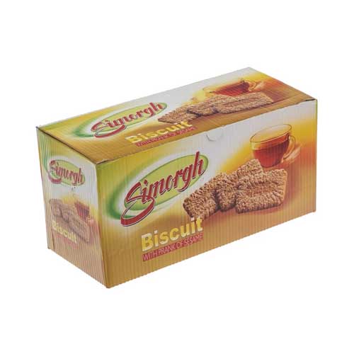بیسکویت جعبه ای سیمرغ با وزن 750 گرم دارای 6 طعم پرتقالی، نارگیلی، موزی، شکری، وانیلی و کنجدی میباشد. این محصول فاقد اسیدهای چرب ترانس بود و با طعم منحصر به فرد و خوشمزه برای پذیرایی نیز مناسب میباشد.