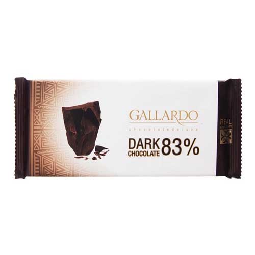 شکلات تلخ گالاردو 83 درصد با سه وزن 23، 65 و 80 گرم، یک شکلات خالص و با کیفیت است که از کره کاکائو تولید شده است. دارای عطر و مزه جذاب شکلات بوده و لحظات دلپذیری را برایتان فراهم میکند.